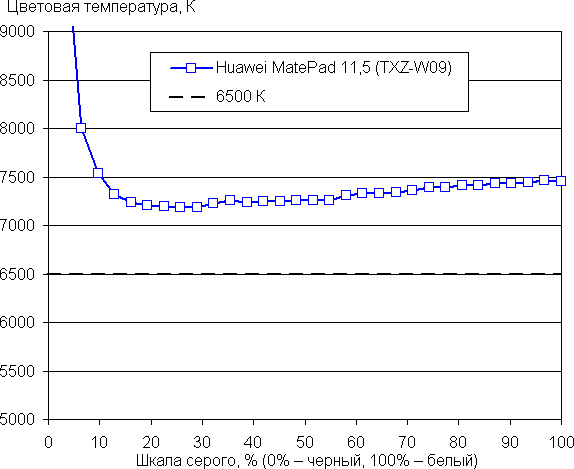При этом цветовая температура и ΔE мало изменяются от оттенка к оттенку серого — это положительно сказывается на визуальной оценке цветового баланса. (Самые темные области шкалы серого можно не учитывать, так как там баланс цветов не имеет большого значения, да и погрешность измерений цветовых характеристик на низкой яркости большая.)