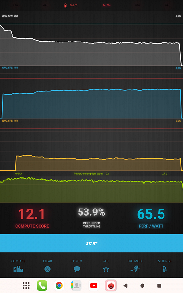 Teclast T65 Max работает на SoC MediaTek Helio G99 (ее планшетная модификация называется MT8781). CPU включает восемь ядер, из которых шесть энергоэффективных, а два — высокопроизводительных, с максимальной частотой 2,2 ГГц. Объем оперативной памяти в тестовом экземпляре составляет 8 ГБ, возможно виртуальное расширение памяти. Платформа бюджетная, но, впрочем, не сверхбюджетная, она лишь немногим ниже типичного современного среднего уровня.