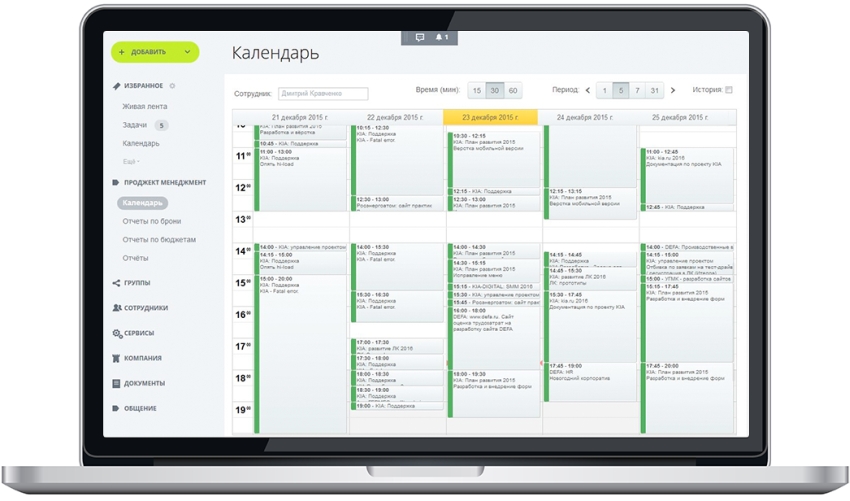 - Для работы используются привычные инструменты портала: проекты (рабочие группы), постановка и выполнение задач, планирование рабочих совещаний, использование календаря событий и т.д.