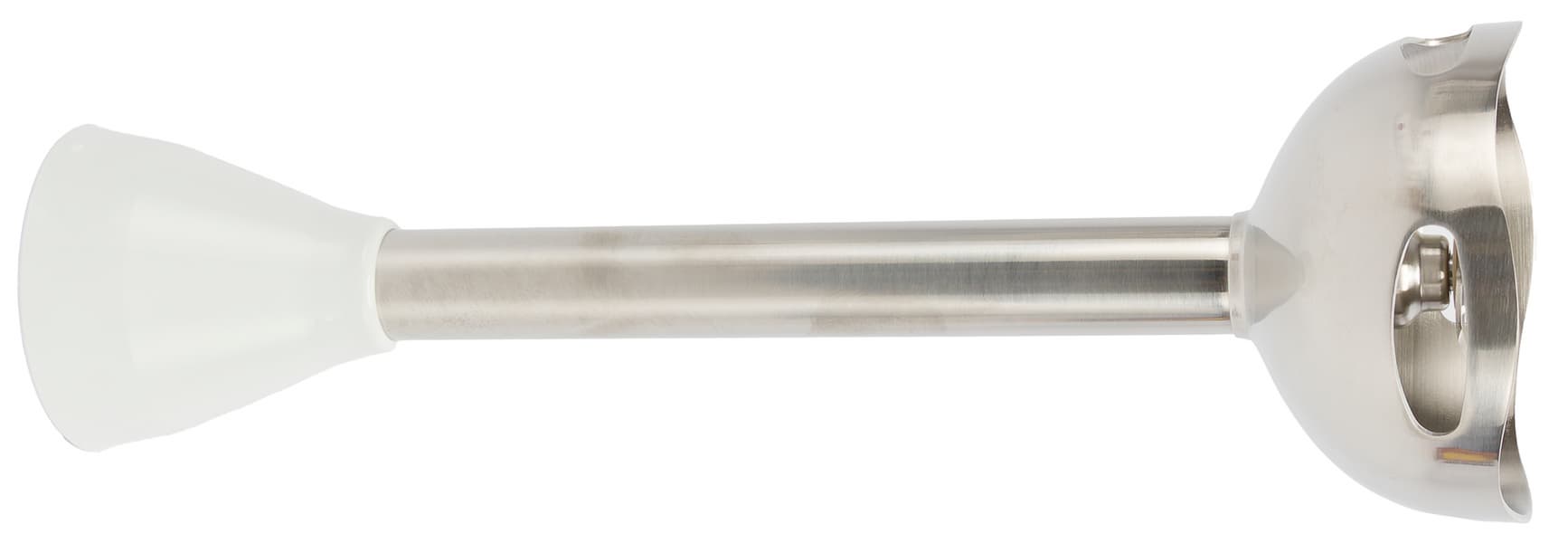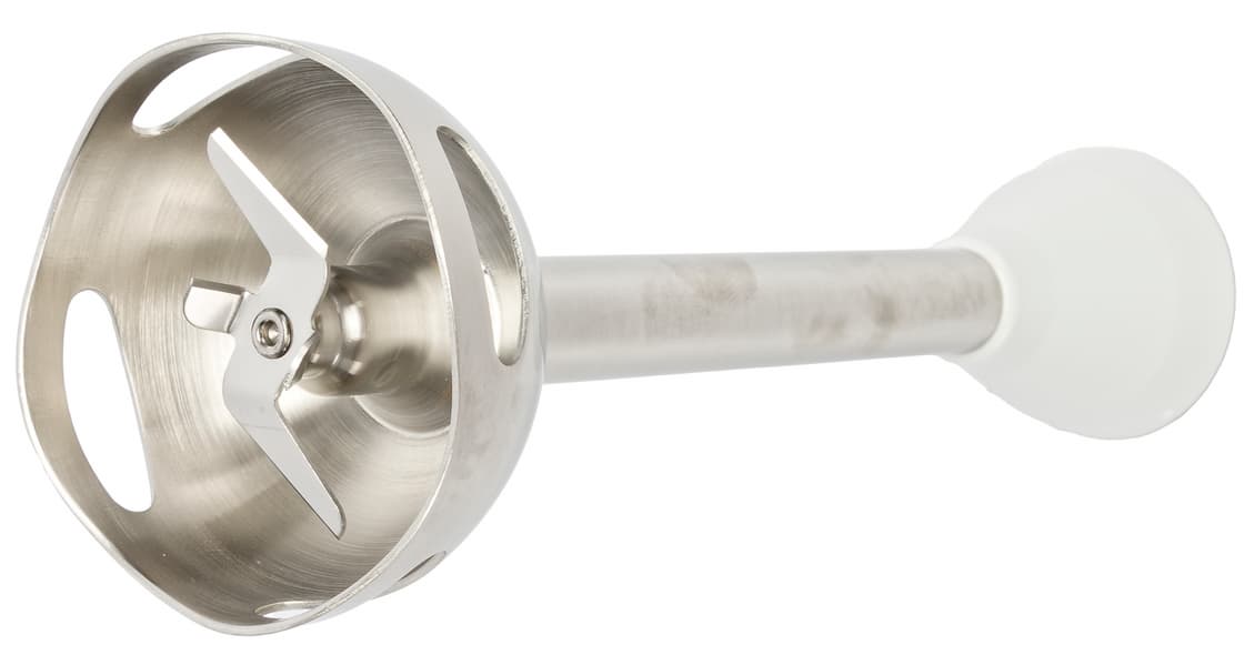 Погружная насадка не разбирается, ее основание сделано из пластика, а ручка, остро заточенный нож из четырех лепестков и глубокий купол с прорезями — из нержавеющей стали.