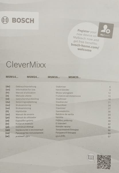 Bosch MSM24100 приехал к нам в прямоугольной коробке с качественной полноцветной полиграфией. На гранях прочной упаковки размещены фотографии самого устройства, наименования бренда и модели, описание ее основных преимуществ, краткие технические характеристики и информация о производителе.