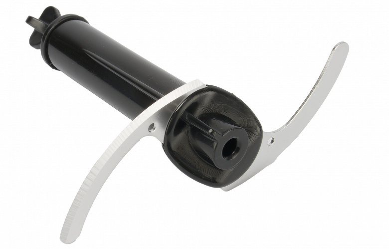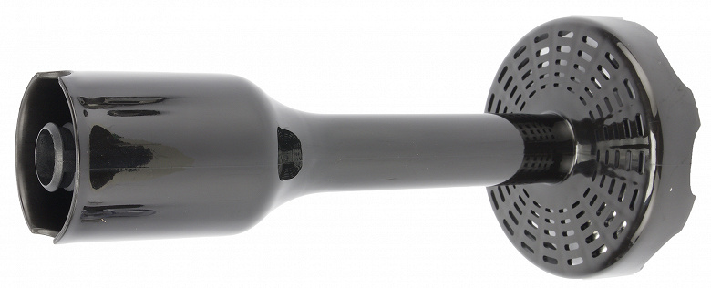 Также к блендеру прилагается насадка для приготовления пюре. Она также имеет классическую конструкцию и сделана из глянцевого пластика.