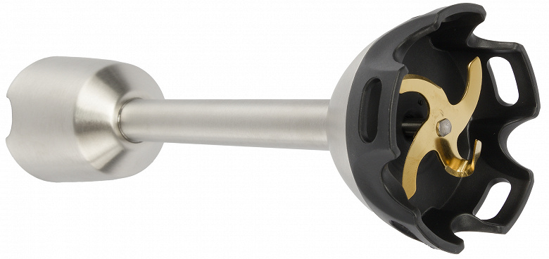 Нож состоит из четырех лопастей: двух более широких, и двух более узких. Разработчик сообщает, что ножи у нашего блендера «с титановым покрытием».