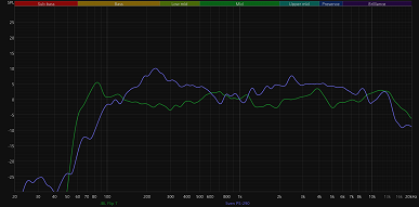 Отсутствие «гудения и бубнения» в НЧ-диапазоне хорошо заметно по графику кумулятивного затухания спектра (он же «водопад» или waterfall).
