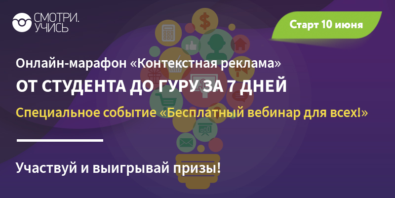 Приглашаем вас на онлайн-марафон «Контекстная реклама», где эксперты портала Смотри.Учись будут вас учить, а вы — выполнять домашние задания и получать обратную связь по каждому (!) вопросу.