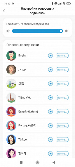- выбрать язык (голосовой пакет) для звуковых сообщений