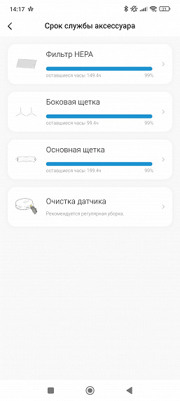 - просмотреть оставшийся ресурс расходников (фильтров и щеток)
