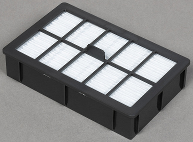 Фильтрация мусора осуществляется с помощью фильтра-сетки из капрона и традиционного прямоугольного HEPA-фильтра.