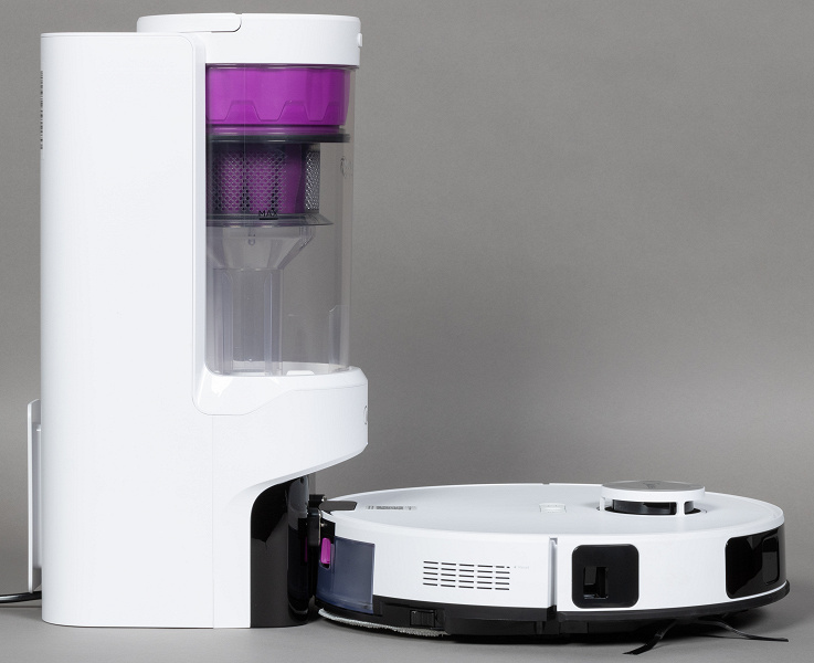 Отметим, что решения с базой, оснащенной циклонным фильтром, мы уже встречали. Поэтому данный робот мы встретили без былого удивления, и сразу же попытались понять — есть ли в данной модели что-то новое.