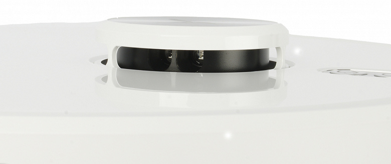 По бокам расположены датчики, позволяющие роботу перемещаться максимально близко к стене, и решетка динамика и выхода воздушного потока справа и слева соответственно.