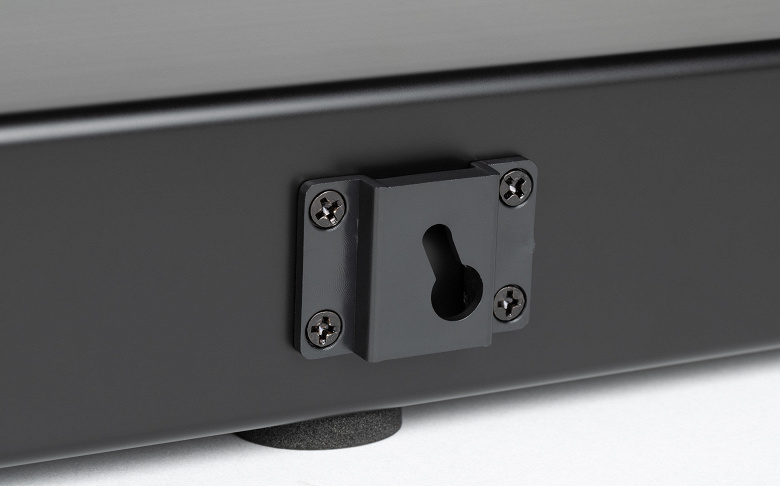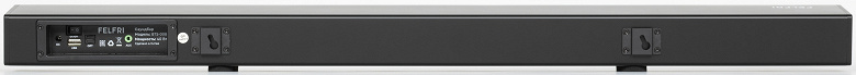 Саундбар компактный и, по меркам своего класса, не слишком длинный — органично он будет смотреться даже с телевизорами с небольшой диагональю, начиная от 19 дюймов. «Ушки» для настенного монтажа уже установлены на корпус, необходимые крепежные элементы идут в комплекте. Размещается он почти вплотную к стене, при этом глубины ниши с разъемами достаточно, чтобы подключить кабели — коннекторы не будут упираться в стену. Ну и, конечно, ничего не мешает положить Felfri BTS-008 на стол или полку — ножки на дне корпуса прекрасно справляются со своей задачей.