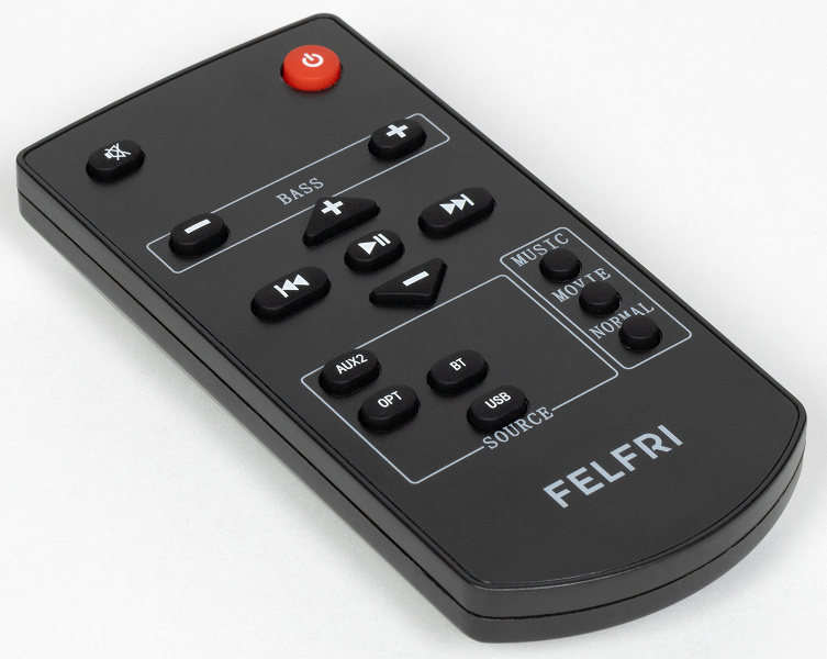 Пульт дистанционного управления в комплекте есть, а вот батареек AAA, необходимых для его работы, не положили. Казалось бы, мелочь —, но все равно не слишком приятно: если нужных батареек под рукой не окажется, придется тратить время и силы на их покупку. Стоят они недорого и часто идут в комплекте даже с самой бюджетной техникой, так что за их отсутствие Felfri BTS-008 вполне можно немножко покритиковать.