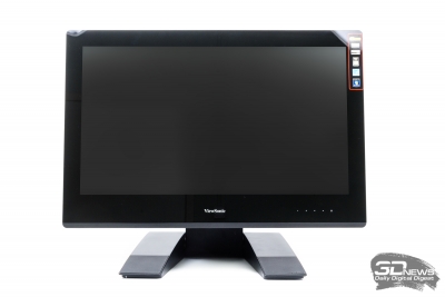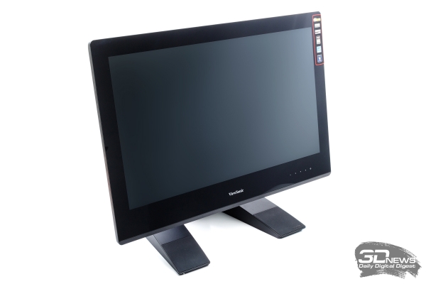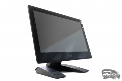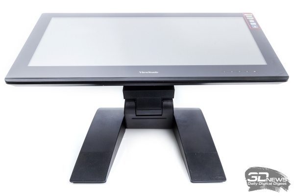 Вообще, все модели с сенсором, которые успели побывать у нас в редакции, выглядели примерно одинаково: монолитная панель, закрытая глянцевым стеклом, и мощная откидывающаяся опора. Как мы уже упоминали, в ViewSonic решили кардинально пересмотреть внешний вид сенсорного монитора. Во-первых, он должен быть универсальным, то есть при желании выглядеть и как монитор, и как небольшой сенсорный стол. А во-вторых, он должен восприниматься серьезно не только отдельными энтузиастами, но и гораздо более широкими потребительскими массами. На наш взгляд, дизайнерам и инженерам компании это удалось.