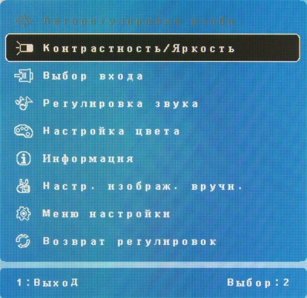 Если уделить меню некоторое время, то можно понять, что, несмотря на обилие пунктов, структура его проста и понятна. Условно его можно разделить на несколько частей: регулировка изображения и звука, выбор входа, настройка окна меню и сервисных функций монитора. Стоит отметить, что найти нужную позицию можно без чтения инструкции.