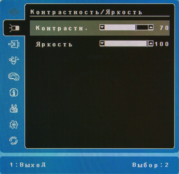 Первый пункт меню под названием «Контрастность/Яркость» предлагает отрегулировать соответствующие параметры.