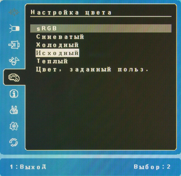 Подменю «Настройка цвета» предоставляет пользователю на выбор одно из шести готовых сочетаний параметров изображения.