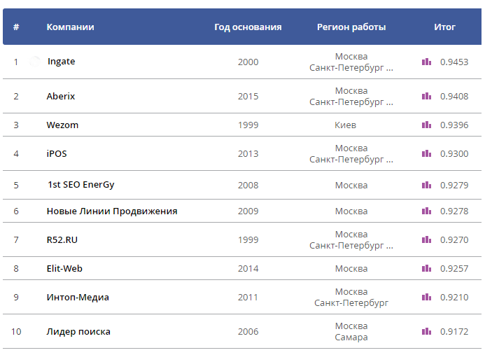 Полную версию рейтинга, а также исследование по результатам опроса клиентов смотрите на SEOnews, в разделе Рейтинги.