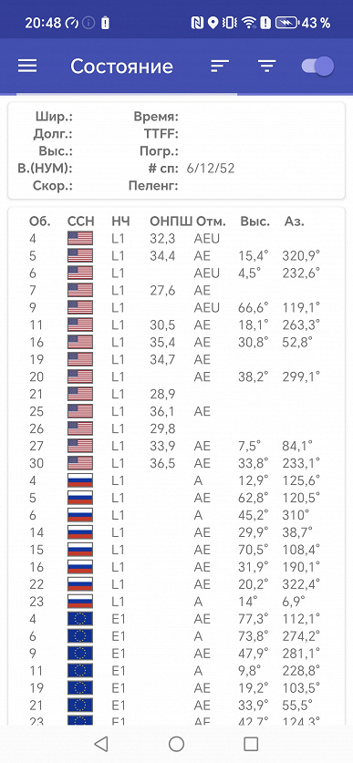 - GPS, Galileo, Глонасс, QZSS, BDS