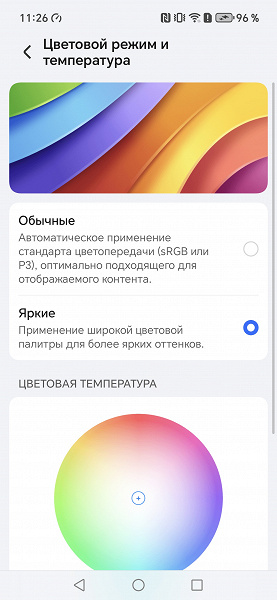 Фотография выше получена при активном профиле Обычные [цвета] в настройках экрана, всего их два: