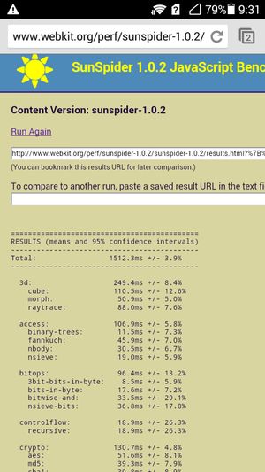 Что касается бенчмарков для оценки скорости движка javascript, то стоит всегда делать скидку на то, что в них результаты существенно зависят от браузера, в котором запускаются, так что сравнение может быть истинно корректным только на одинаковых ОС и браузерах, а такая возможность имеется при тестировании не всегда. В случае с ОС Android мы всегда стараемся использовать Google Chrome.