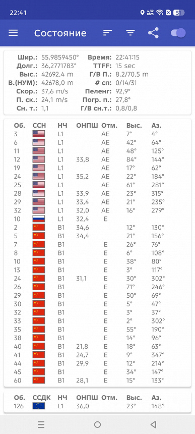 - GPS, Galileo, Глонасс, QZSS, BDS