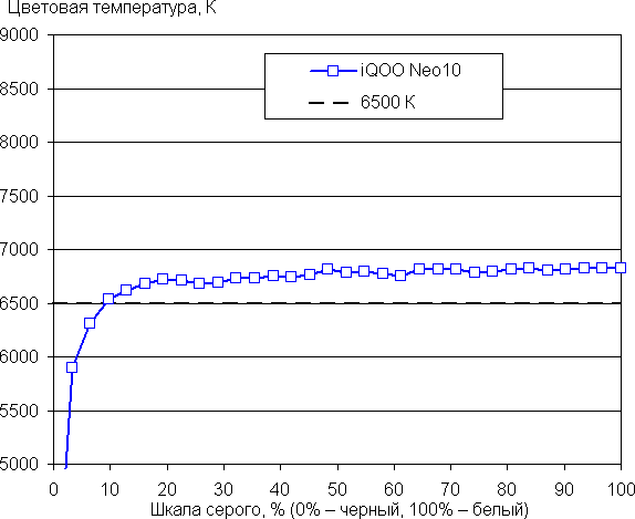 (Самые темные области шкалы серого в большинстве случаев можно не учитывать, так как там баланс цветов не имеет большого значения, да и погрешность измерений цветовых характеристик на низкой яркости большая.)