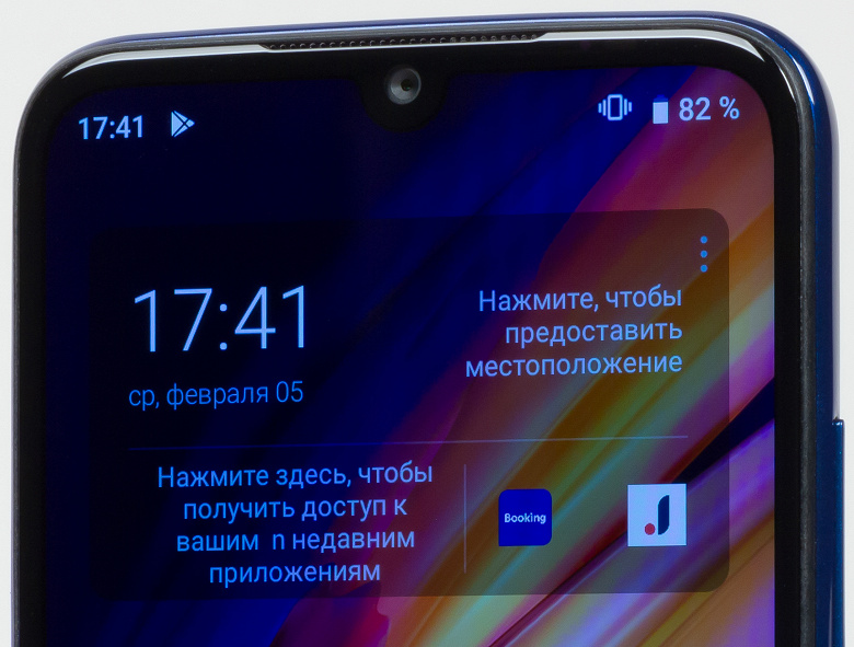 Для фронтальной камеры в экране сделали каплевидный вырез. Камера одна, светодиодного индикатора рядом нет.
