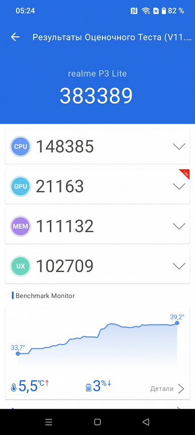 SoC изготовляется по устаревшему 12-нанометровому техпроцессу. Это платформа с очень скромной производительностью для самых недорогих мобильных решений, набирающая в тесте AnTuTu 11-й версии менее 400 тысяч баллов — по сути, минимальные показатели на сегодняшний день. Для сравнения: среднеуровневые платформы получают в этом тесте около 1,5 млн баллов, а топовые — под 4 млн. Так что Realme P3 Lite — действительно совсем простенький в плане мощи смартфон для организационных нужд. Съемка видео в 4К@60 fps и требовательные игры не для него (API Vulkan вообще не поддерживаются). Да и притормаживания в работе интерфейса при прокручивании рабочих столов и запуске приложений тоже случаются.