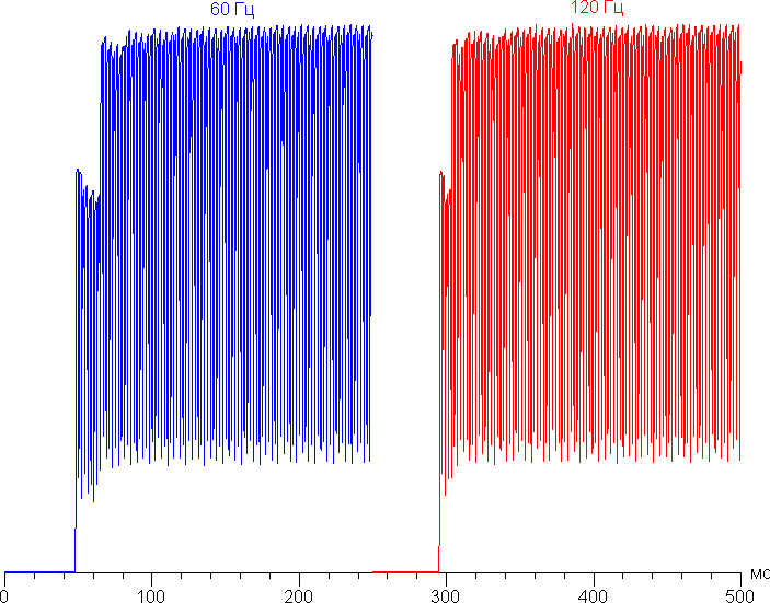 Действительно, в режиме 120 Гц плавность прокрутки повышается. Характер модуляции при этом не меняется.
