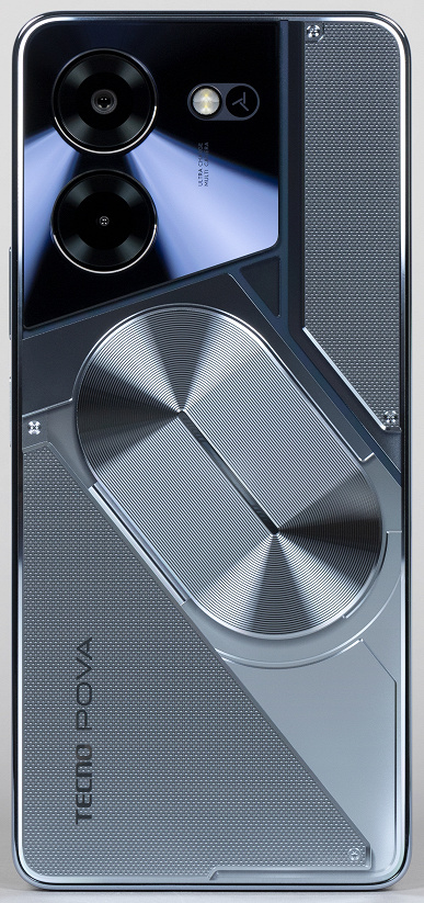 Смартфон по габаритам довольно крупный, толщиной почти в сантиметр. Создатели начинили корпус аппарата некоторыми техническими новшествами, коих ранее не было в линейке Pova. Например, жесткий гироскоп — физический механизм, который помогает в играх точнее прицеливаться и управлять автомобилем.