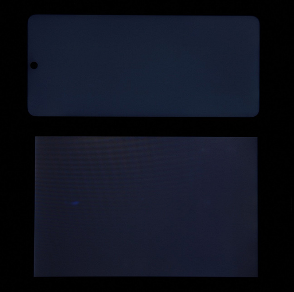 При перпендикулярном взгляде равномерность черного поля хорошая (для наглядности яркость подсветки на смартфоне установлена на максимум):