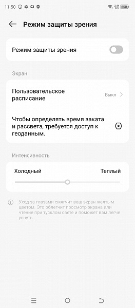 Присутствует настройка, позволяющая снизить интенсивность синей компоненты.