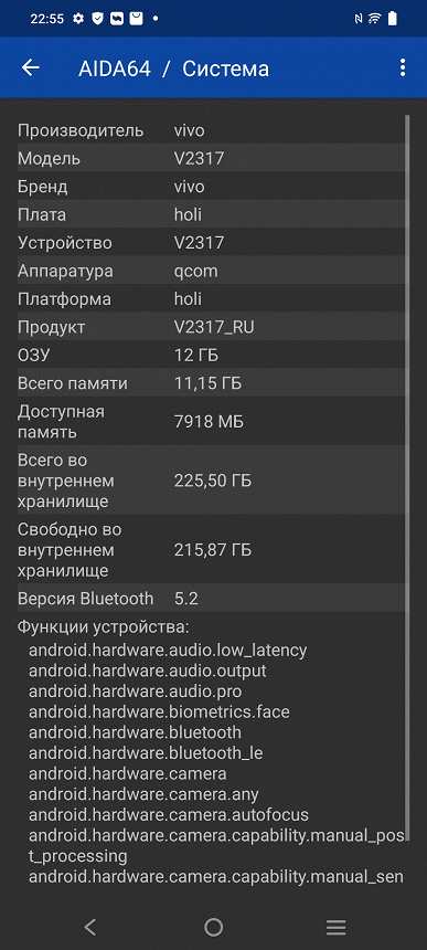 В качестве программной платформы Vivo V29e 5G использует ОС Android 13 с оболочкой Funtouch 13. Предустановленных приложений и предлагаемых к скачиванию программ очень много, можно было бы и поменьше. Всплывающей рекламы нет. Верхняя шторка не разделена на две части, она единая, «телескопическая». Официальный доступ к магазину и приложениям Google на месте.