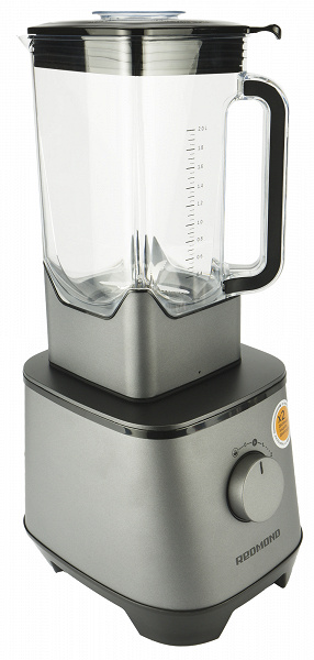 Тяжелый массивный блендер Redmond BS415 имеет строгий и даже брутальный вид. Корпус базы, как и основание двухлитрового кувшина, выполнены из матового пластика графитового оттенка и дополнены вставками черного цвета с глянцевым покрытием.