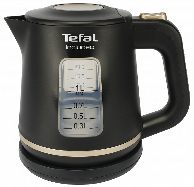 Небольшой и простой в управлении и дизайне чайник с всего одной кнопкой управления: радость минимализма без лишних наворотов. Модель вмещает 1 литр воды, есть четкие отметки на 0,3, 0,5, 0,7 и 1 л на смотровом окошке, что очень удобно. Указанная мощность чайника 2000–2400 Вт не совпала с нашими измерениями (максимум 1714 Вт, в среднем 1570 Вт), и молниеносного кипячения не вышло. Но полный объем закипает за 3 минуты 37 минут, это и так отличный результат. Корпус неплохо термоизолирован: температура воды через час после закипания составила 66 °C. Уровень шума при закипании воды достигал 61 дБА. Полезный объем почти совпал с заявленным: 990 мл.