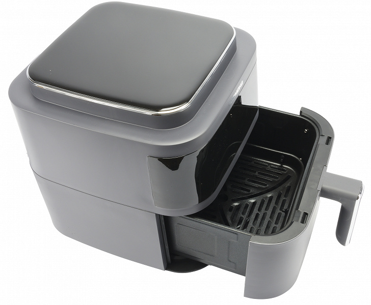 Нам пришлись по душе интуитивно понятное управление, достаточный объем корзины, которого хватает для приготовления блюд на двух-трех человек, равномерное распределение горячего воздуха. Но для получения оптимального результата корзину не стоит перегружать: при слишком большом количестве продуктов поток воздуха ослабевает, и нижний слой готовится медленнее. А еще отметили лаконичный стильный внешний вид прибора — действительно, очень красивый аэрогриль.