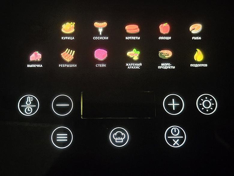 Управление аэрогрилем — сенсорное, с 12 предустановленными программами и ручным режимом.