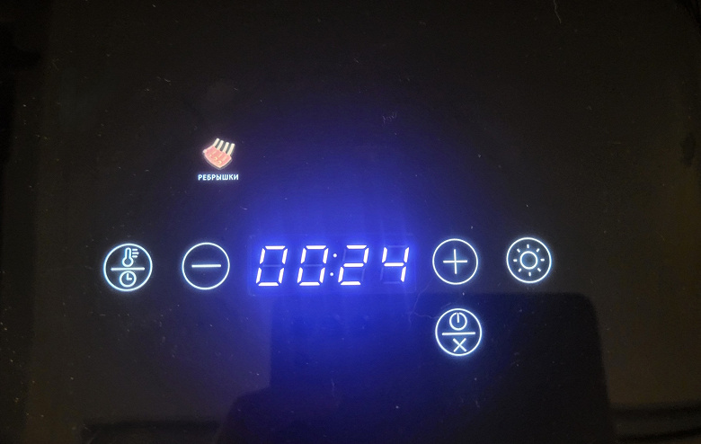 Простое управление с сенсорной панелью, четкие индикаторы, возможность менять параметры до и во время готовки нам понравились. А вот смотровое окно и подсветка камеры отсутствуют, что не критично, но некоторым пользователям может быть неудобно.