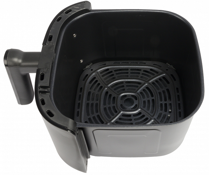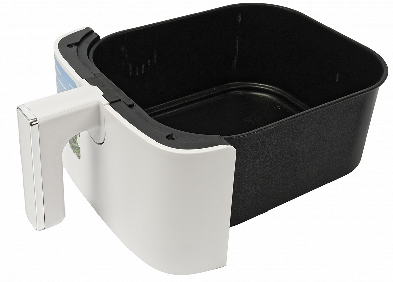 Мы готовили в этом приборе курицу, свиные ребрышки, рыбу, кекс и драники (правда, последние на сковородке получаются вкуснее, зато в этом аэрогриле их не надо переворачивать). Курица и ребрышки получились поджаристыми с равномерной корочкой, рыба пропеклась без пересушивания, кекс равномерно поднялся, драники умеренно подрумянились без лишнего жира. Испарения и запаха масла не наблюдалось, корпус нагревался слабо, а уровень шума оказался невысоким. Нам понравилось, что подсветка камеры позволяет следить за процессом без извлечения корзины и что при вынимании чаши панель управления деактивируется, что предотвращает случайное включение пустого прибора.