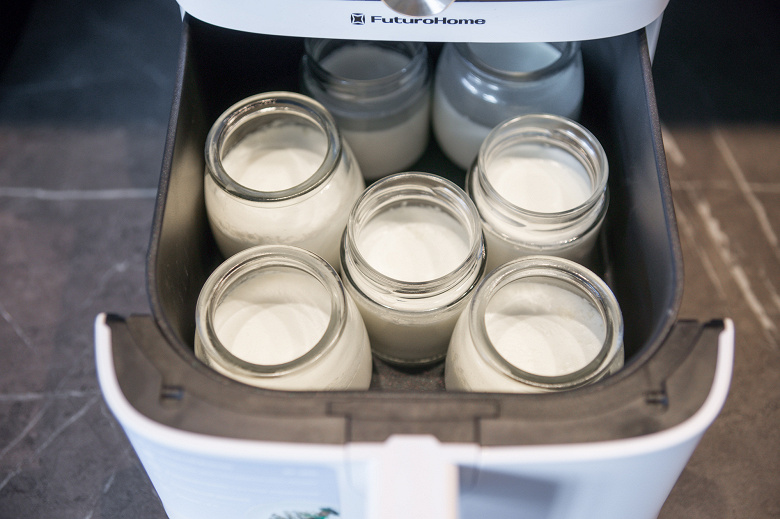 В этом приборе тоже нет смотрового окошка, но на практике это не сильно мешает и на качестве приготовления не сказывается. И еще один нюанс: низкотемпературный режим приготовления есть, но таймер рассчитан на 90 минут, то есть в ручном режиме приготовить йогурт невозможно: максимум, поставить на расстойку тесто. Для йогурта можно использовать режим «Сухофрукты», в котором можно выбрать температуру от 35 °C и время до 480 минут (автоматически он работает на 80 °C).