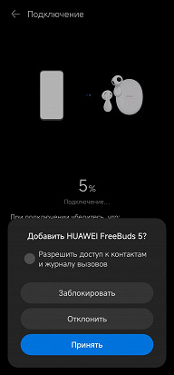 Производитель заявляет пусть и не рекордный, но очень неплохой уровень автономности Huawei FreeBuds 5 — до 5 часов работы без использования шумоподавления и до 3,5 часов с ним. То есть примерно на час больше, чем у прошлой версии.