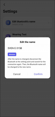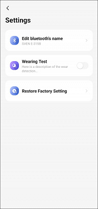 Для настройки Sven E-310B/E-315B используется знакомое многим универсальное приложение для умного дома — Smart Life (Tuya), доступное для Android и iOS. Создатели гарнитуры решили не изобретать велосипед, а воспользоваться готовым и проверенным решением — и это, безусловно, правильный шаг. Такой подход позволил сразу реализовать пусть и не идеальную, но вполне рабочую систему. Впрочем, пространство для улучшений еще очень велико. Начать можно хотя бы с перевода на русский язык: само приложение давно локализовано, а вот интерфейс на странице наушников пока полностью на английском. Голосовые сообщения от гарнитуры, к слову, тоже озвучены исключительно на английском.