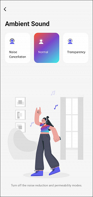 Система шумоподавления работает на уровне, характерном для бюджетных моделей: не идеал, но пользоваться можно и нужно — с «шумодавом» определенно комфортнее, чем без него. От гула метро он не спасет, но позволит не выкручивать громкость на максимум. Зато в условиях городской прогулки вдоль оживленной магистрали или в шумном кафе разница ощущается сразу — становится заметно тише и спокойнее. Отдельный плюс — возможность вручную настроить степень подавления. Это помогает избежать знакомого многим эффекта «давления в голове», который, может проявляться даже при не самой агрессивной работе системы.
