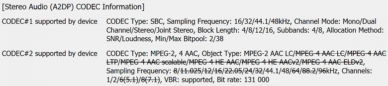 Полный список поддерживаемых кодеков и их режимов мы получили с помощью утилиты Bluetooth Tweaker.