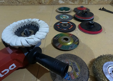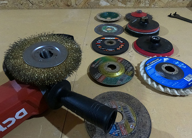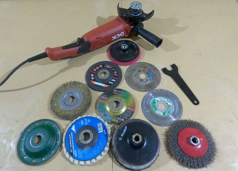 Для тестирования УШМ были приготовлены насадки разного назначения, по дереву, металлу и бетону.