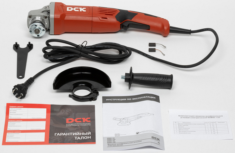 Рассмотрев «продвинутую» аккумуляторную модель УШМ бренда DCK (DCK KDSM04–125), перейдем к менее сложному в техническом плане аналогу — болгарке, работающей от электросети.