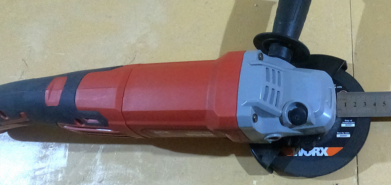 Дизайн стандартен для всех углошлифовальных машин. Габариты болгарки также можно отнести к средним, привычным для бытовых 125-миллиметровых болгарок.