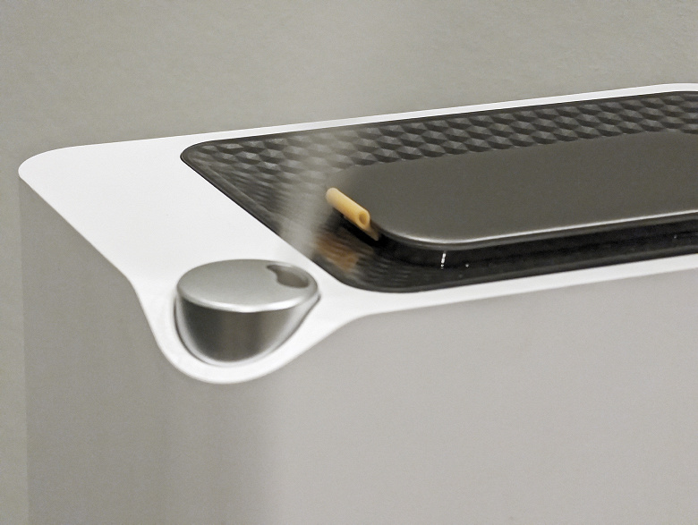 Под круглой темной решеткой скрыт стерилизатор, обеспечивающий, по словам производителя, очистку воды от бактерий и аллергенов.