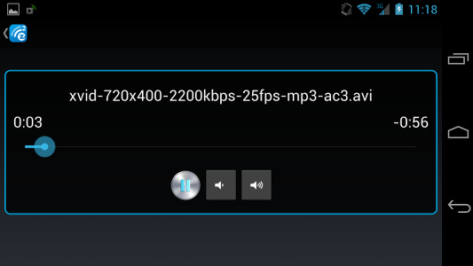 Во время работы с аудиофайлами и видеороликами на экране мобильного устройства есть только значки пуск/стоп/пауза, полоска навигации и кнопки регулировки громкости. При просмотре Web-сайтов и фотографий, на экране мобильного устройства для удобства навигации контент дублируется. Отметим, что видео из браузера обычно выводится только на медиаадаптер, а органы управления плеером отображаются поверх Web-страницы на смартфоне.