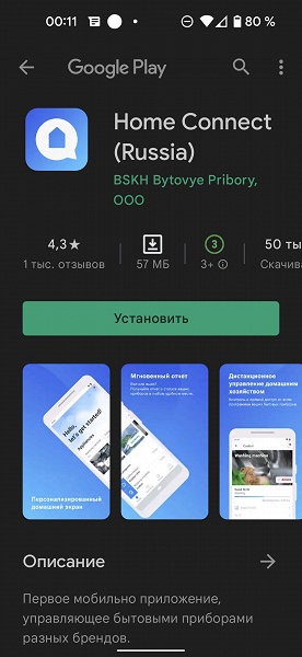 Для дистанционного управления стиральной машиной используется приложение Home Connect (Russia). На момент создания обзора оно насчитывает около 50 тысяч скачиваний и весьма неплохой рейтинг: 4,3 из 5 возможных.